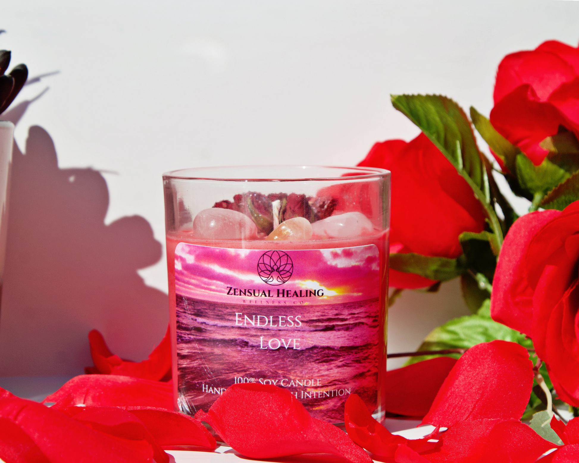 Hand-poured in small batches, this candle is infused with intention, love, and healing energy, making it a powerful tool for manifesting endless love. Let the warm glow of this candle fill your space with love and positivity, and allow it to guide you in setting the intention of love.